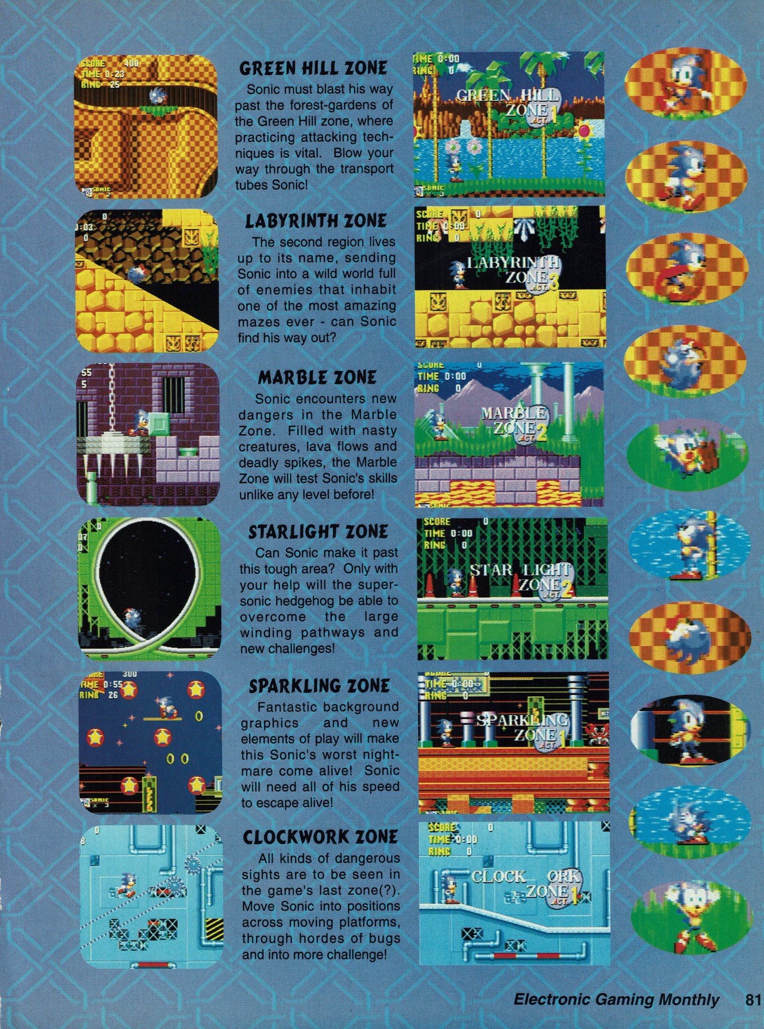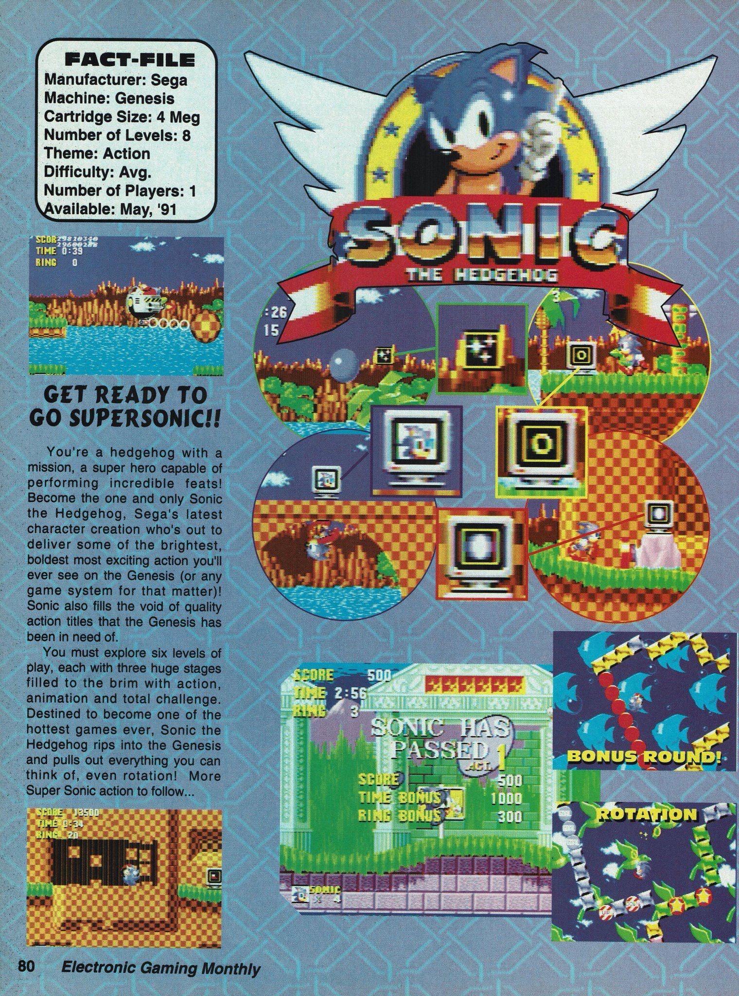 We’re looking back at the start of it all for a little nostalgia! Does this bring you back? This was an exciting time to be a gamer indeed! Electronic Gaming Monthly – Issue 22 (May 1991). Sonic The Hedgehog coverage. Despite being the cover story, their coverage was only two pages. Check out those early Zone names… (Click Article for Images)