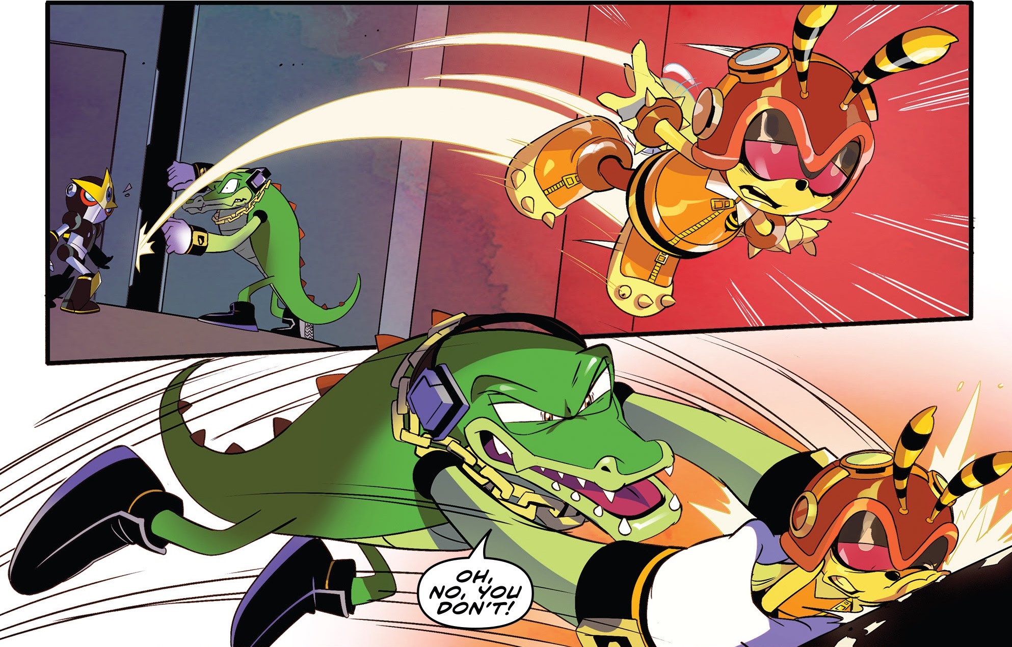 - Vector and Espio return to Restoration HQ with a captive Charmy. It was revealed that he was captured during the events of Sonic the Hedgehog Annual 2020, "Flock Together".
