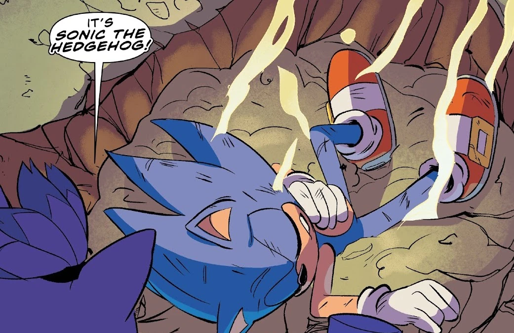 - Vector stops Charmy from charging headfirst at Metal Sonic, not wanting a repeat of the events of Sonic the Hedgehog #17, "Plague".