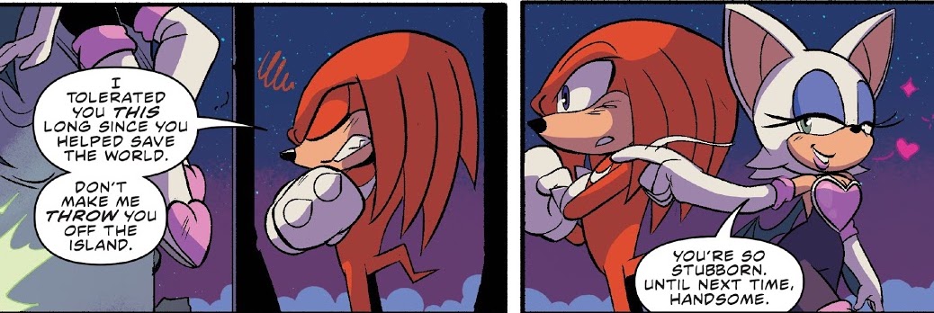 Rouge says goodbye to Knuckles.