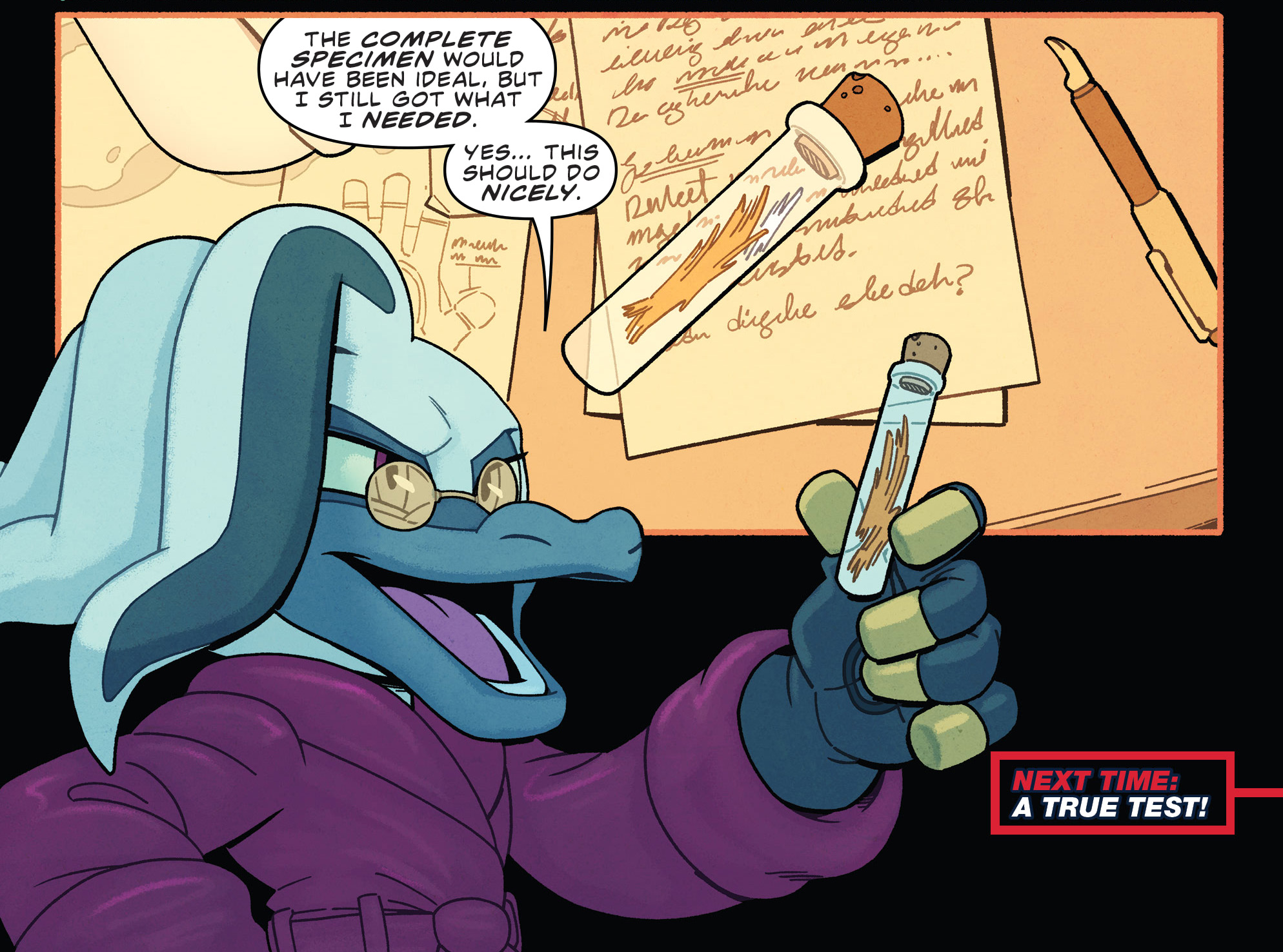 At Starline's base, the doctor is revealed to have survived and escaped. He says that it was a disaster and wishes that the others would just go along with his plan for once. However, the event was not all for naught as Starline managed to grab a piece of Tails' fur, even though the complete specimen would have been more ideal for him. Looking at the fur in a stored test tube, Starline says that it will do nicely.