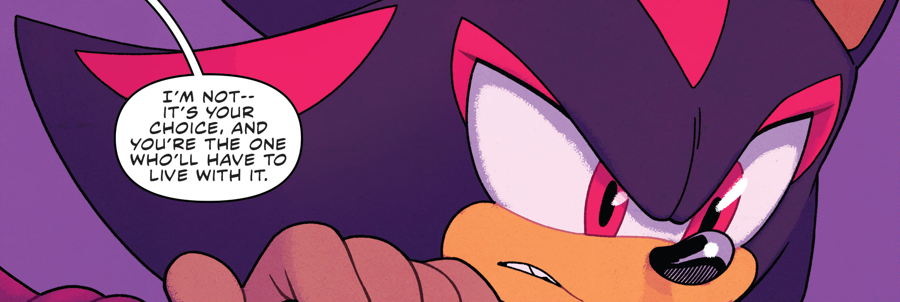- Shadow recalls Sonic's warnings to him before he was turned into a Zombot, which occurred in Sonic the Hedgehog #19, "Crisis City, Part 1".