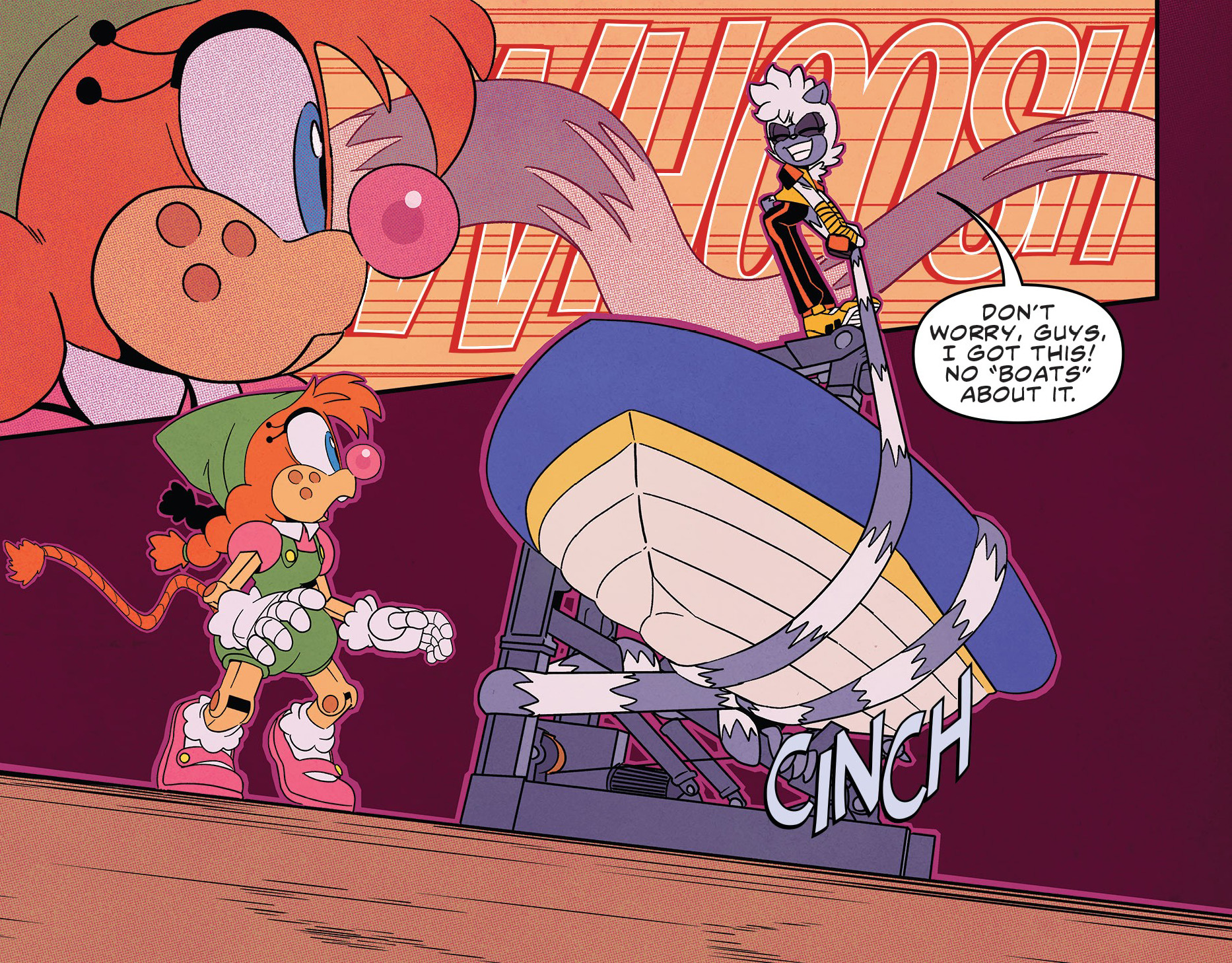 - A background character resembling Gadget Hackwrench from Chip 'n Dale Rescue Rangers is seen walking in front of the shop below Sonic and his friends in the third panel on page three.