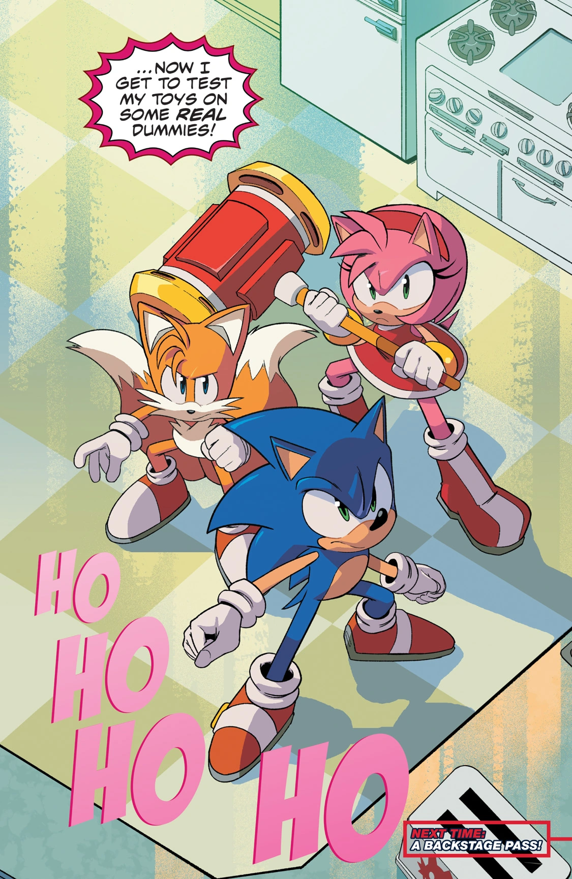 - Sonic, Amy, and Tails are still floating through Dr. Eggman's test chambers due to the events of Sonic the Hedgehog #37, "Test Run, Part 1". They would escape in Sonic the Hedgehog #40, "Test Run, Part 4".