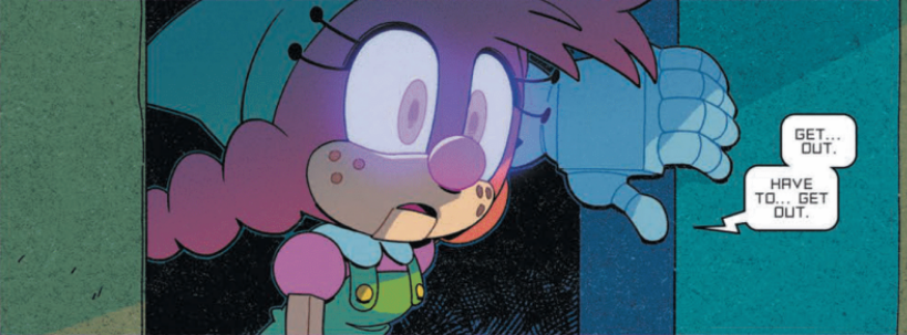 - The Crabmeat and Egg Pawn's eyes on page sixteen glow their regular blue instead of purple.