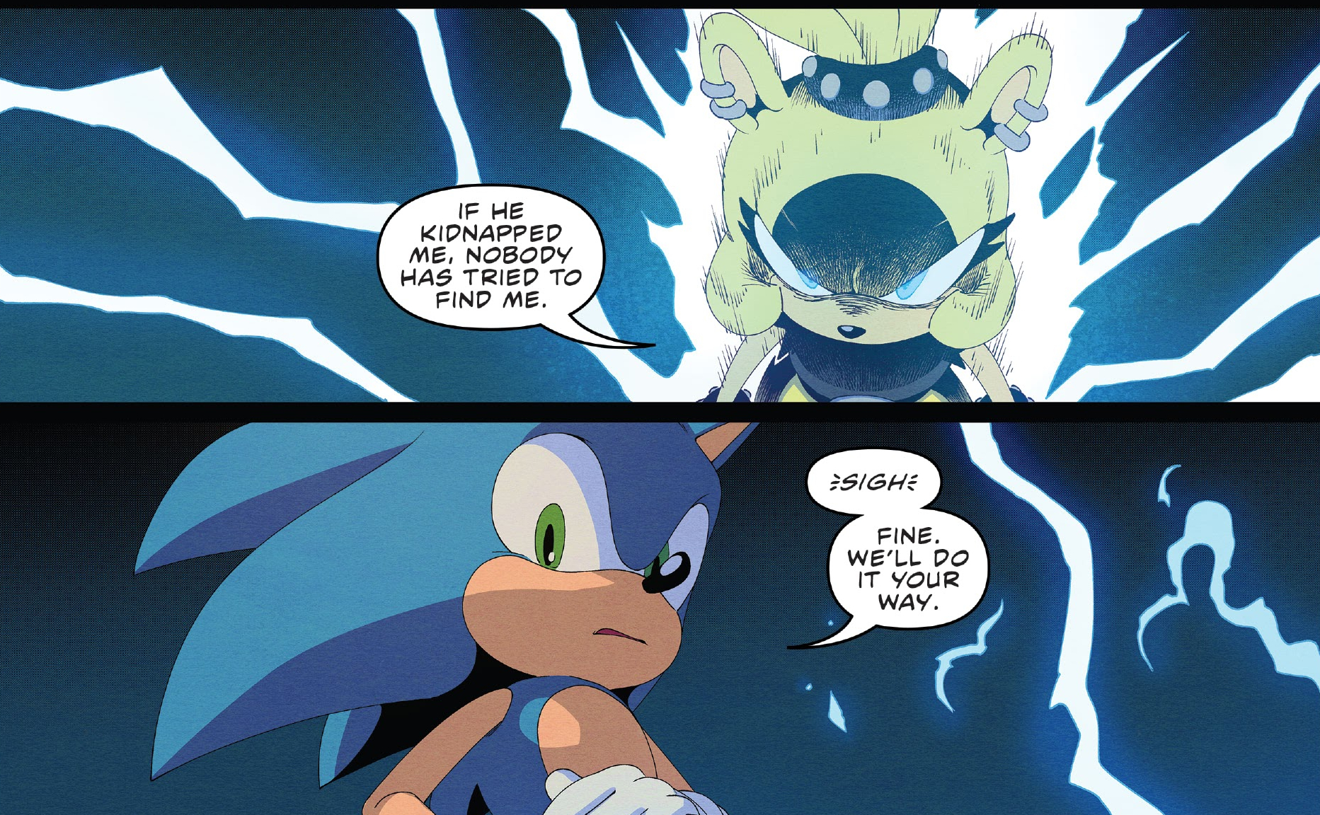 - Sonic reminds Belle that she does not have to join them in the mission, which is what Tails first told her in the previous issue.
