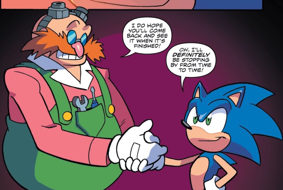 - Dr. Eggman is discovered to suffer from amnesia and have become a reformed handyman. This would be recalled in future issues.