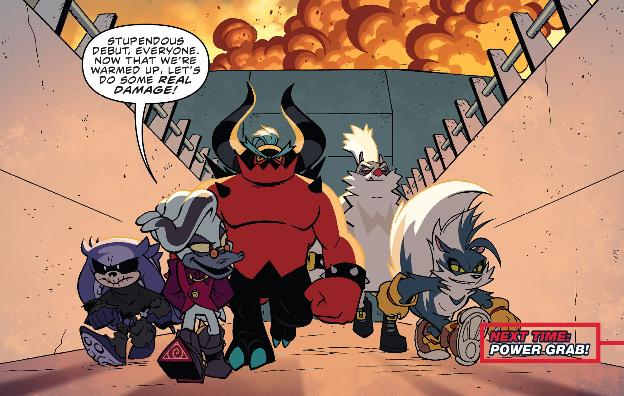 Rough asks his brother if they were really working with the others, to which Tumble says that he did not have any better ideas. Mimic says that if Starline could get Eggman off of his back, he would take it as fair compensation. The inmates are freed and begin wreaking havoc in the prison. As this occurrs, Zavok, Mimic, Rough, Tumble and Starline walk away from Everhold Prison, with the latter exclaiming to the others that now that they were warmed up, they should get ready to do some real damage.
